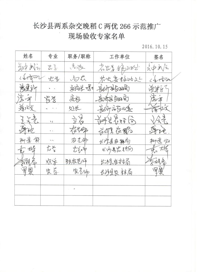 C两优266靖州、长沙县两地专家现场测产验收结果